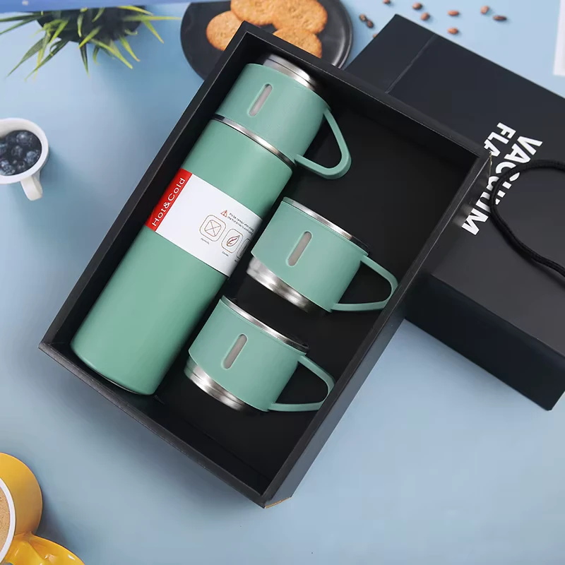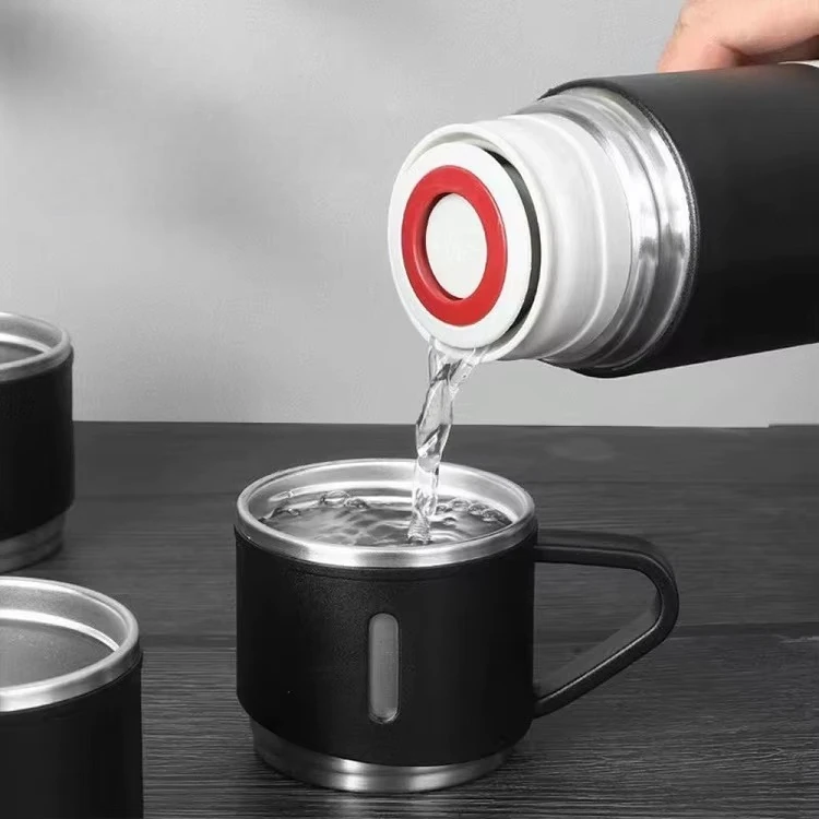 Ovaj set uključuje 500 ml termos bocu izrađenu od kvalitetnog 18/8 (304) nehrđajućeg čelika i praktične šoljice, pogodna kombinacija za svakodnevnu upotrebu i putovanja. Vakuumska izolacija sprječava izmjenu toplote pa kava ili čaj ostaju vrući, a hladna voda svježa i bez kondenzacije na vanjskoj površini.